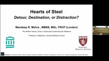 | Hearts of Steel - Detour, Destination, or Distraction? by Mandeep R. Mehra, MBBS, MSc, FRCP The William Harvey Chair in Advanced Cardiovascular Medicine Professor of Medicine, Harvard Medical School |