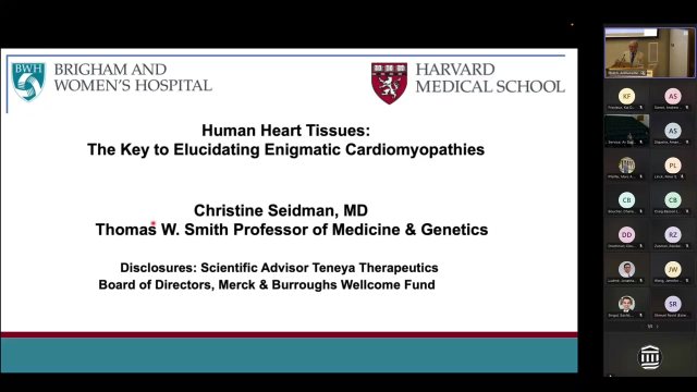 | Human Heart Tissue: The Key to Elucidating Enigmatic Cardiomyopathies by Christine E. Seidman, M.D. Thomas W. Smith Professor of Medicine, Harvard Medical School Director, Cardiovascular Genetics Center Brigham and Women's Hospital |