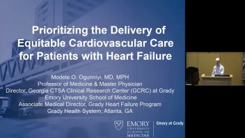 | Prioritizing the Delivery of Equitable Cardiovascular Care for Patients with Heart Failure by Modele O. Ogunniyi, MD, MPH Professor of Medicine & Master Physician Director, Georgia CTSA Clinical Research Center (GCRC) at Grady Emory University School of Medicine Associate Medical Director, Grady Heart Failure Program Grady Health System, Atlanta, GA |